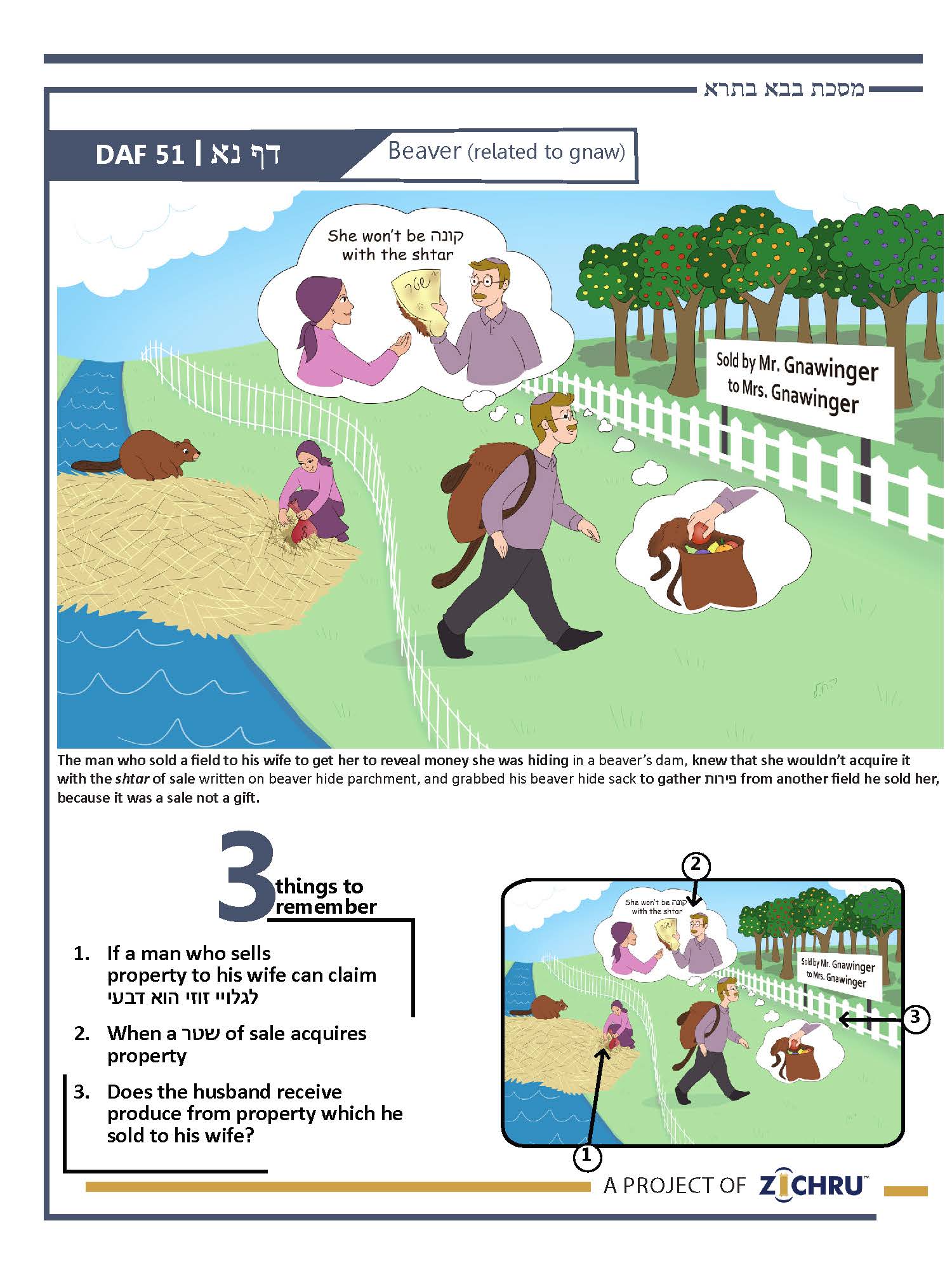The man who sold a field to his wife to get her to reveal money she was hiding in a beaver’s dam, knew that she wouldn’t acquire it with the shtar of sale written on beaver hide parchment, and grabbed his beaver hide sack to gather פירות from another field he sold her, because it was a sale not a gift.