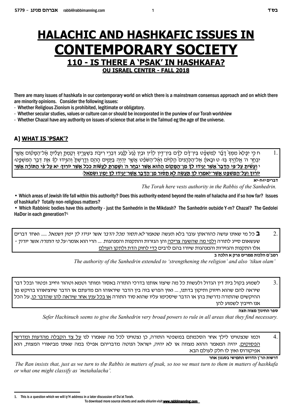 What does psak mean? Do we find a psak on Hashkafa in the Bavli?