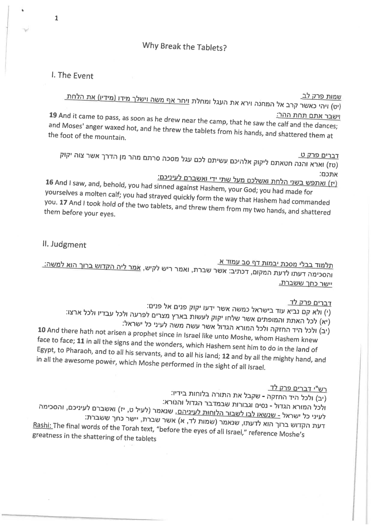 The scene of Moshe witnessing the sin of the Golden Calf and breaking the luchot is repeated twice - in Shemot and in Devarim. How do they differ? How is the event perceived? The very last words of the Torah praise Moshe for breaking the luchot - why is this the way in which the Midrash wants us to remember Moshe!