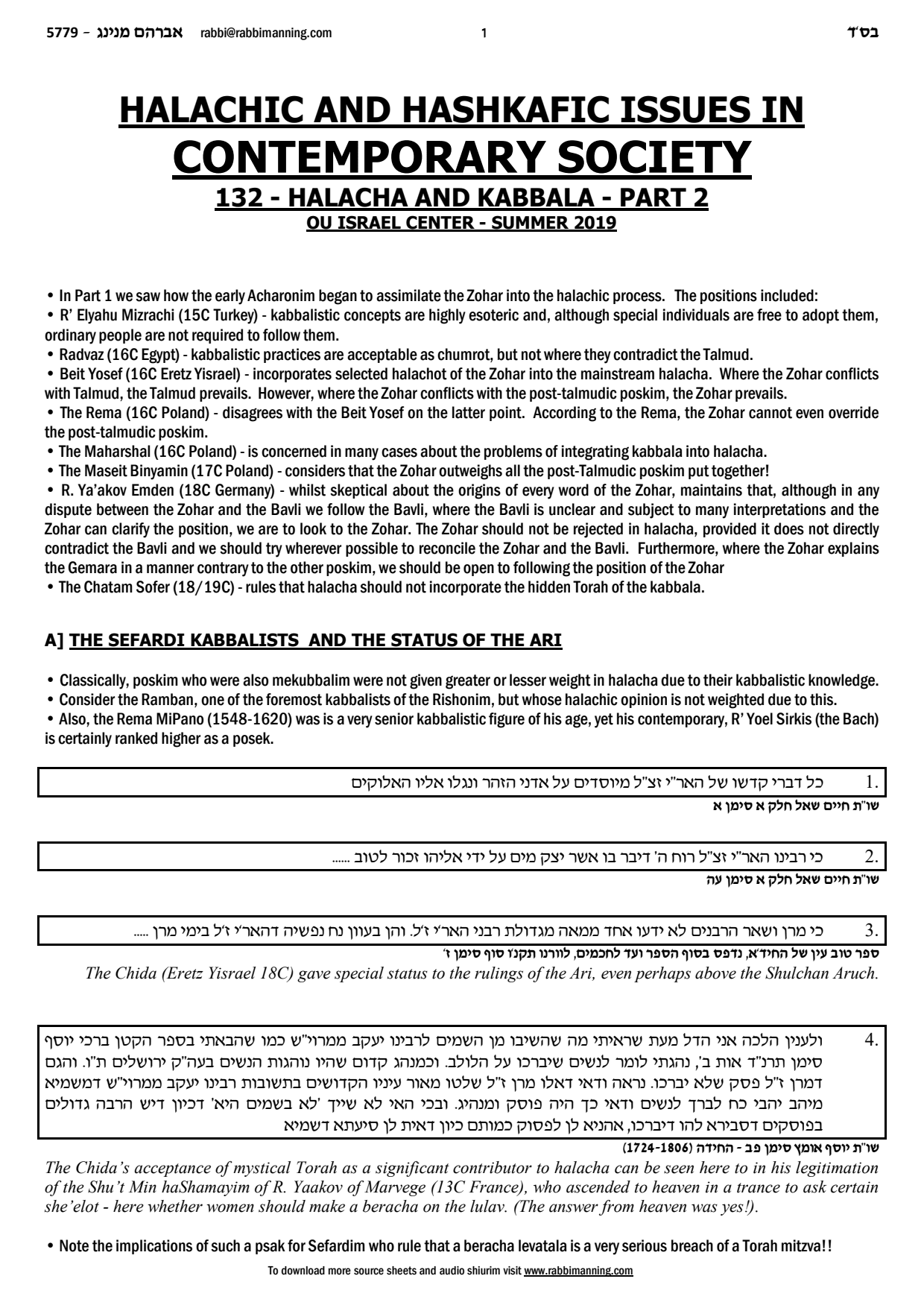 Halacha and Kabbalah (part 2)